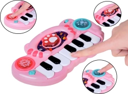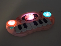 Ce jouet musical coloré associe amusement et apprentissage : les touches jouent des notes de base, des boutons spéciaux déclenchent des sons de percussions et des mélodies joyeuses, tandis que les petites lumières du panneau réagissent visuellement à chaque pression. Les enfants exercent l’ouïe, la vue et le toucher tout en développant leur motricité fine.