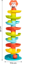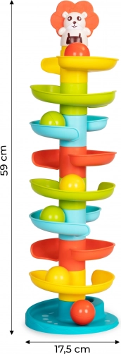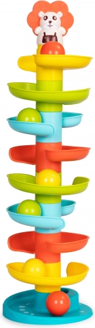 La tour avec toboggan en spirale pour billes est un excellent jouet pour les tout-petits qui observeront et poursuivront les balles avec plaisir. Son utilisation développera les compétences motrices et manuelles, vous permettant d’allier amusement et développement harmonieux de l’enfant.