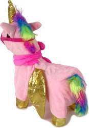 Une licorne rose avec une crinière multicolore et des ailes dorées ravira chaque enfant.