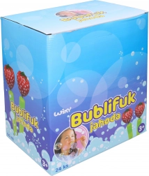 Plongez dans le monde du plaisir et des jeux avec le bublifuk à saveur de fraise. Ce bublifuk vous séduira non seulement par son délicieux parfum, mais également par la création de bulles magnifiques et durables :