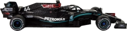 La voiture est dotée de logos de sponsors reproduits avec précision, ce qui en fait non seulement un jouet, mais aussi une pièce de collection. Les ailerons avant et arrière sont fabriqués en plastique souple, garantissant une bonne résistance aux chocs. L’intérieur comprend un modèle de pilote réaliste.