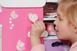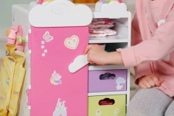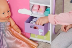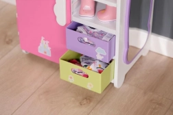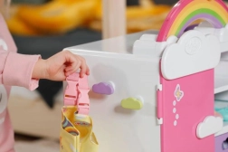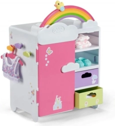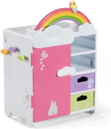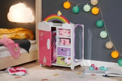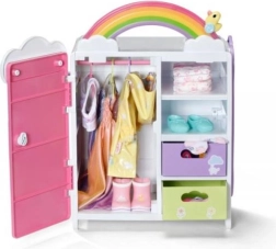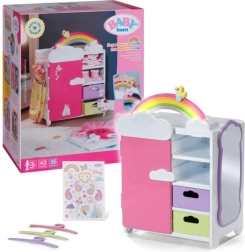 Découvrez l’armoire arc-en-ciel BABY born, qui allie organisation intelligente et design ludique. Les enfants adoreront l’arc-en-ciel lumineux avec le caneton Berta et la mélodie joyeuse lors du choix des tenues. L’armoire offre assez de place pour tous les accessoires et vêtements de poupées – des robes aux petites chaussures.