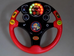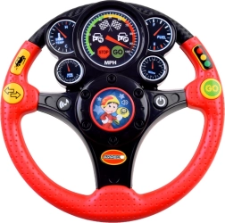 La prise en main est intuitive : le bouton on/off active les sons, les vibrations et l’éclairage, le bouton avec une note lance des mélodies et le klaxon, le « GO » jaune ajoute des vibrations et le son du moteur, les autres boutons jaunes simulent le clignotant et le freinage, et le feu tricolore apprend les couleurs des feux. À la fin du jeu, le volant passe automatiquement en mode veille.