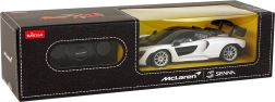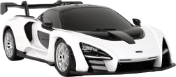 Découvrez la vitesse et le style avec le modèle RC MCLAREN Senna en élégant blanc. Les vitres foncées et les lignes détaillées de la carrosserie soulignent l’aspect premium. Grâce aux pneus en caoutchouc, le modèle se déplace avec assurance sur les sols lisses comme sur les surfaces légèrement irrégulières.