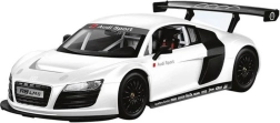 Profitez d’une conduite rapide et fluide avec le modèle sous licence AUDI R8 LMS dans une élégante teinte blanche. Les vitres teintées foncées, la carrosserie détaillée et l’aileron prononcé soulignent l’allure authentique d’une voiture de course. Les roues en caoutchouc assurent une tenue sûre sur les surfaces lisses comme légèrement irrégulières.