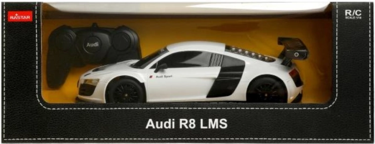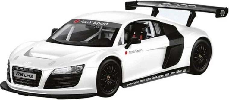 Voiture RC AUDI R8 LMS élégante à l’échelle 1:18 avec design réaliste, roues en caoutchouc pour une meilleure adhérence et contrôle précis avant/arrière/gauche/droite. Structure en plastique durable, alimentation par piles AA et dimensions compactes idéales pour s’amuser à la maison comme en extérieur. Excellent cadeau pour les fans de voitures de sport et les enfants dès 6 ans.