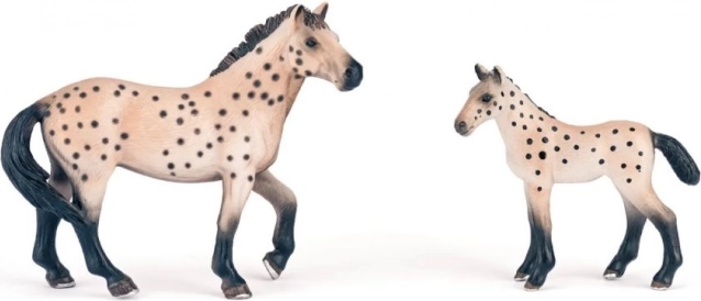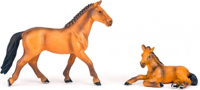 Le set comprend des figurines de chevaux et de poulains de différentes couleurs et tailles, offrant de larges possibilités de jeu et de collection.