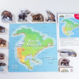 Explorez le monde avec les enfants grâce au puzzle en bois Amérique du Nord et ses animaux. Le set allie divertissement et apprentissage : assemblez la carte du continent à partir de 16 pièces solides et découvrez 10 animaux au rendu réaliste. Idéal pour développer la motricité fine, la pensée logique et les connaissances géographiques.