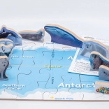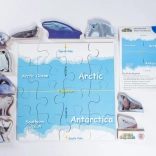 - Carte des régions polaires divisée en 16 pièces, 10 figurines d’animaux autoportantes, fiche d’information