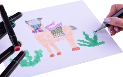 Chaque marqueur possède deux pointes – une fine 1–2 mm pour les détails et les traits, et une biseautée 3–6 mm pour colorer de grandes surfaces et la calligraphie. Le coffret convient aux débutants comme aux utilisateurs avancés : du dessin scolaire et de loisir au design produit, au manga et à l’illustration jusqu’aux croquis architecturaux. L’étui textile compact à fermeture éclair garde tout bien organisé et permet un transport facile.