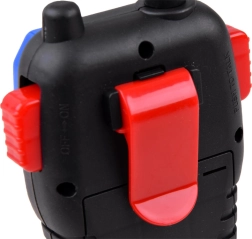 Une paire ludique de talkies-walkies pour enfants, pour jouer dehors comme à la maison, offrant une communication bidirectionnelle avec une portée jusqu’à 35 m, un pilotage facile via le bouton PTT, un clip ceinture pour garder les mains libres et une antenne souple et caoutchoutée pour une meilleure robustesse.