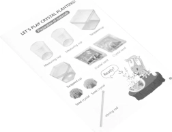 Des illustrations claires et des instructions guident les enfants tout au long de l’expérience – du mélange de la solution à la mise en place de la graine et à la croissance du cristal.