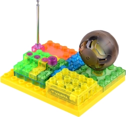 Ce kit éducatif apprend aux enfants à assembler une radio FM réellement fonctionnelle à partir de blocs conducteurs spéciaux. Deux modèles au choix : une radio simple sans réglage de volume ou une version avancée avec contrôle de volume progressif et une disposition de circuits claire. L’utilisation est intuitive : un bouton pour allumer/éteindre la radio, un second pour sélectionner la station FM et un élément rotatif pour régler le volume.