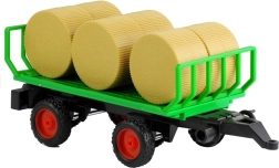 La remorque amovible transporte 6 bottes de foin, que l’on peut charger et décharger à volonté. La traction à friction permet au tracteur d’avancer après une poussée, tandis que les roues en caoutchouc à bande de roulement assurent une conduite stable sur différentes surfaces. Le jouet est fabriqué en plastique de haute qualité et résistant sans arêtes vives, conforme au marquage CE et à la norme EN 71.