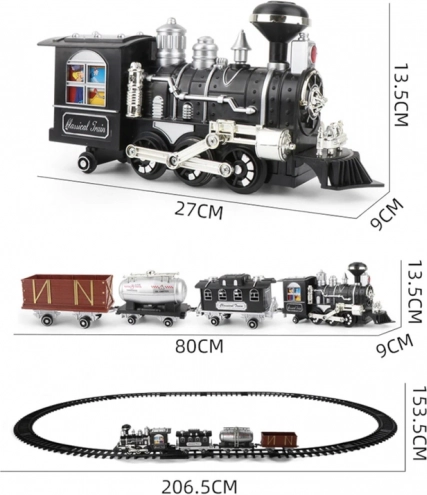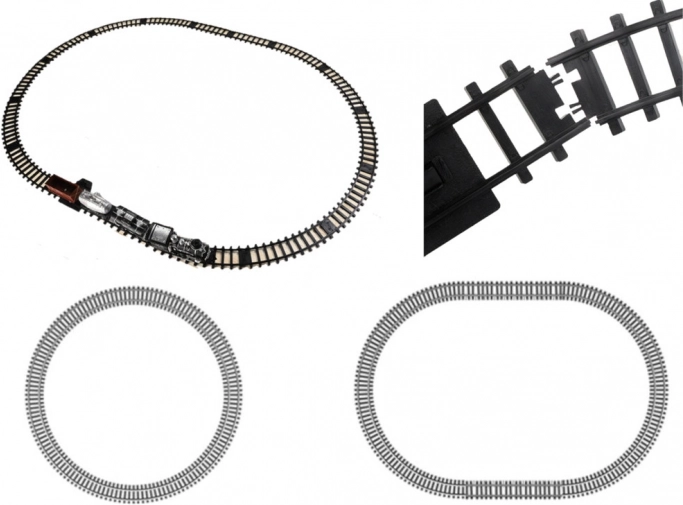 La longueur totale du circuit dépasse 206 cm, garantissant un divertissement spectaculaire. Les fonctionnalités interactives comme les lumières et les sons ajoutent une sensation réaliste comme un véritable train. L'unité de contrôle permet le mouvement vers l'avant et l'arrière, l'accélération et l'utilisation du signal sonore.