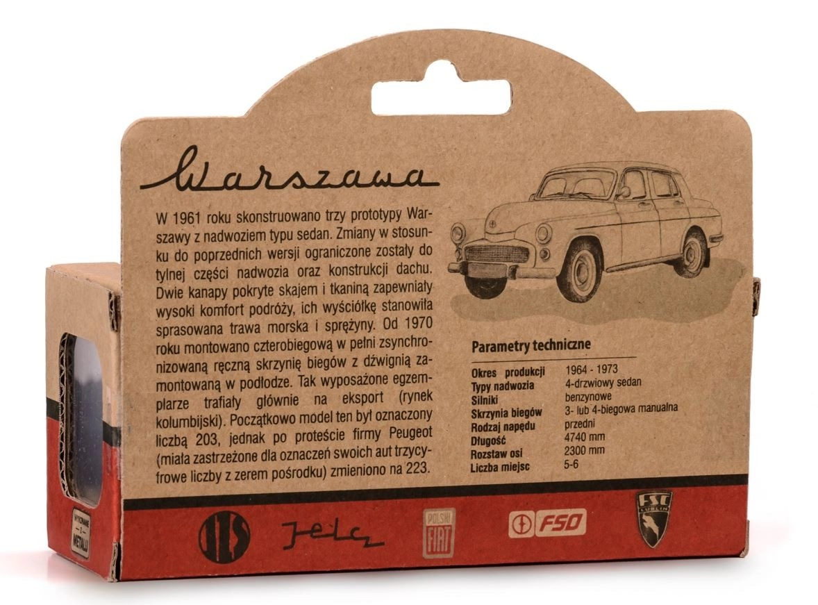 Warszawa 223 est un modèle de la célèbre voiture polonaise, conçu en 1961 avec une carrosserie de type berline. Le design élégant et les détails soigneusement travaillés en font un complément idéal à toute collection de modèles de voitures. Les caractéristiques les plus importantes de ce modèle incluent :