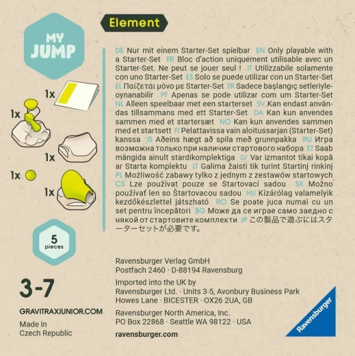 Étendez votre circuit à billes GRAVITRAX JUNIOR avec l’élément d’action Saut, qui propulse la bille vers la section suivante et garantit une diversion captivante et sans fin. Idéal pour les enfants à partir de 3 ans, il favorise la créativité et la pensée logique lors de la construction d’univers thématiques.