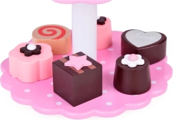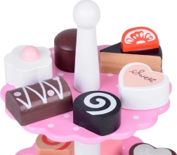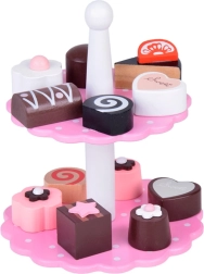 Il comprend diverses pâtisseries en bois et un présentoir à deux étages dans des couleurs pastel douces évoquant l’univers des sucreries. Grâce à ce set, chaque jeu devient une délicieuse aventure.