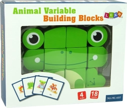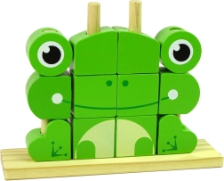 Le puzzle créatif en bois en forme de grenouille est conçu pour encourager les enfants à créer et à apprendre la coordination. Le puzzle comprend 12 pièces qui se placent sur une base avec des chevilles, permettant de réaliser différents animaux ou objets selon l’imagination.