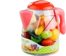 Découvrez un set alimentaire coloré dans un bocal pratique avec poignée rouge. Chaque élément de ce set est soigneusement fabriqué en plastique sûr et certifié, garantissant un amusement sans souci. Le bocal avec poignée facilite le transport.