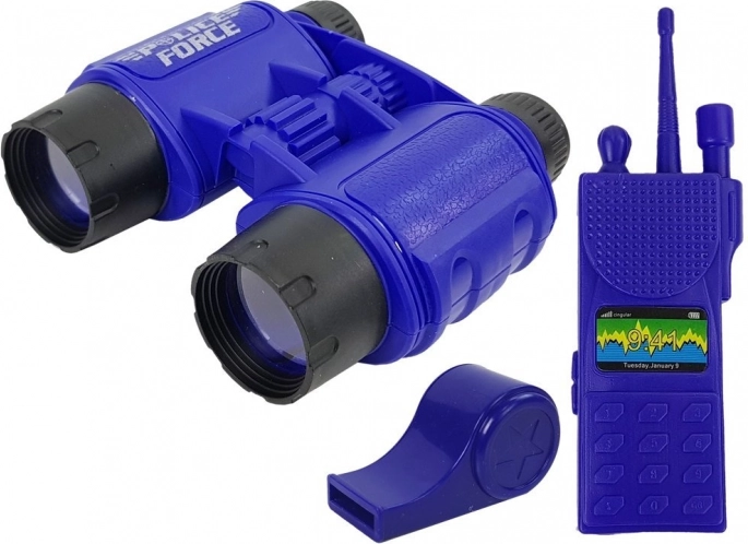 Menottes avec clés, badge, talkie-walkie, sifflet et jumelles – tout ce dont un petit policier a besoin pour une mission palpitante.