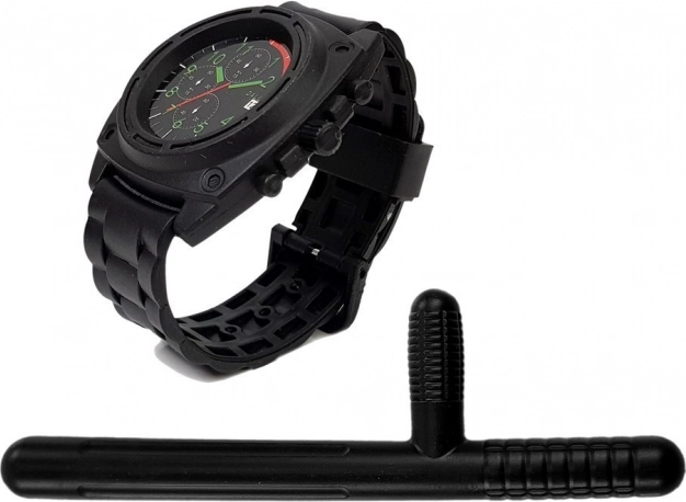 - pistolet, étui, badge, sifflet, jumelles, menottes, talkie-walkie, montre, matraque (tonfa)