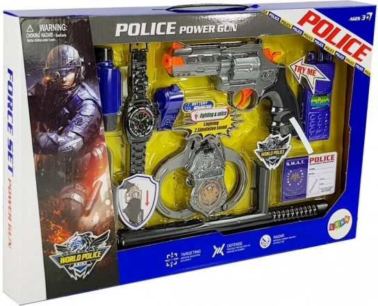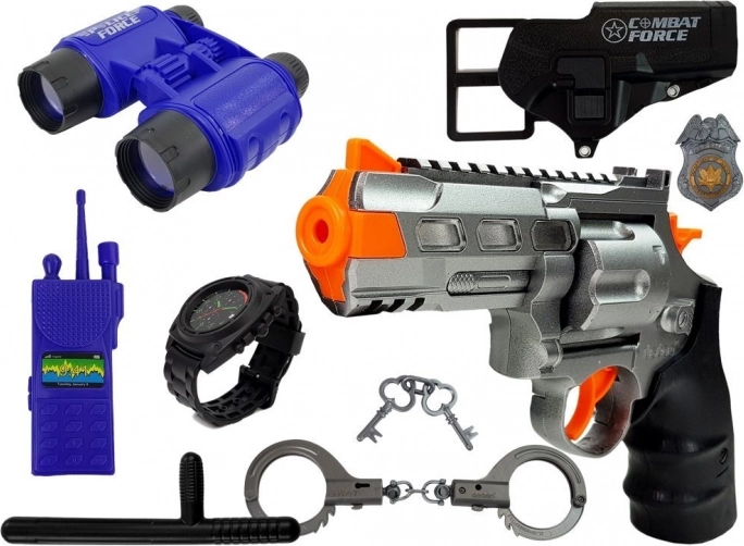 Set de police pour enfants – pistolet avec lumière et son, menottes, jumelles, talkie-walkie, badge et accessoires
