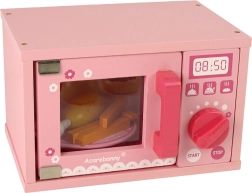 Adorable four à micro-ondes en bois rose pour enfants, un excellent complément pour la cuisine des petits. Il possède une porte aimantée, une molette rotative avec bruit de cliquetis et est livré avec un riche ensemble d’aliments en bois pour un jeu de cuisine réaliste. Fabriqué en bois de qualité, sûr avec des peintures résistantes.