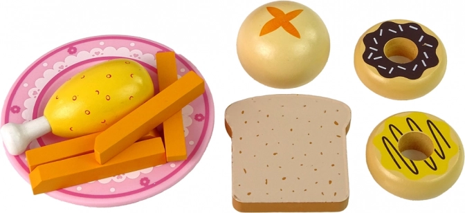 Inclus: une assiette et un assortiment d’aliments: beignets, viennoiseries, frites et pilon de poulet – idéal pour servir et jouer au chef.