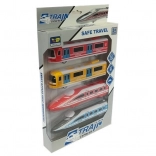 Ce set coloré apporte aux enfants l’univers du rail directement dans leur chambre. Il comprend quatre véhicules – deux locomotives modernes inspirées du Pendolino à grande vitesse (en combinaison rouge et gris-bleu) et deux wagons de métro (jaune et rouge). Chaque pièce est conçue avec un souci de détails réalistes tels que fenêtres, portes, pare-brise avec « essuie-glaces » et éléments de toit rappelant des pantographes.