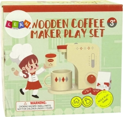 Le set est conçu pour un jeu en toute sécurité : le bois est résistant et agréable au toucher, les pièces tiennent bien dans les petites mains et favorisent le développement de la préhension ainsi que la coordination œil–main. Idéal pour toute cuisine pour enfants ou pour « ouvrir » un café à la maison dans la chambre.