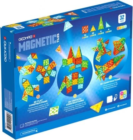 Les Geomag Gems divertissent les enfants tout en les éduquant, en les initiant de manière attrayante et captivante au monde des sciences et de la construction. Geomag Gems 32 est un ensemble de tuiles magnétiques conçu pour développer la créativité, la dextérité manuelle et l’imagination spatiale des enfants dès 3 ans. Les plaques colorées en forme de carrés et de triangles, dotées d’une surface brillante et accrocheuse, invitent à créer des constructions étincelantes. Grâce à l’assemblage facile par aimants, l’enfant peut bâtir des formes tridimensionnelles comme des tours, des maisons ou d’autres constructions originales. Le jouet favorise le développement de la pensée créative et des compétences motrices et permet aux enfants d’expérimenter naturellement les principes de la géométrie et de l’équilibre.