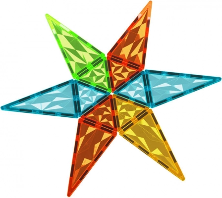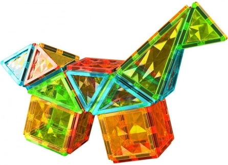 Construisez des fusées et des vaisseaux spatiaux grâce à des connexions magnétiques solides. Les enfants combinent facilement triangles et carrés et découvrent les lois de l’équilibre et de la stabilité.