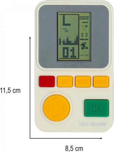 Cette mini console portable apporte le jeu de blocs tombants apprécié dans une construction simple et robuste. Grâce à ses dimensions compactes, elle se glisse facilement dans une poche ou un sac à dos et est prête à divertir à tout moment, partout.