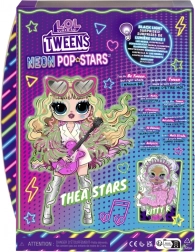 Préparez-vous à entrer dans le monde des pop stars avec L.O.L. Surprise Tweens Neon Pop Stars - Thea Stars! Cette poupée unique est équipée de costumes stylés, de chaussures élégantes, d'un sac à main à la mode, d'une belle guitare, de lunettes de soleil mignonnes en forme de cœur et de boucles d'oreilles décoratives. Chaque détail est conçu pour les fans de mode et de musique.