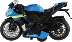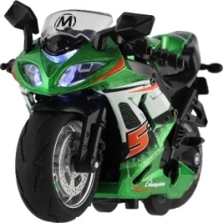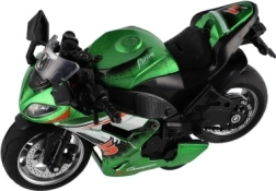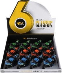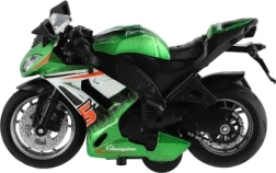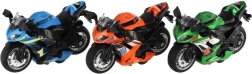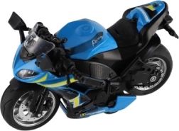 Cette moto de course est conçue pour les enfants à partir de 3 ans et offre des détails réalistes en trois couleurs différentes. Elle mesure 12 x 7 x 6 cm et est fabriquée à partir d'une combinaison de métal et de plastique.