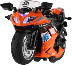 Laissez-vous impressionner par les effets sonores et les lumières brillantes qui ajoutent à l'authenticité de ce jouet. Grâce à la fonction de rétrofriction, vous pouvez regarder la moto filer vers l'avant avec toute son énergie.