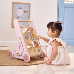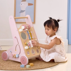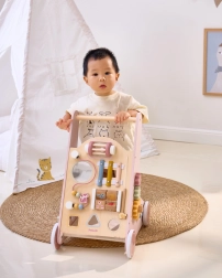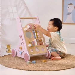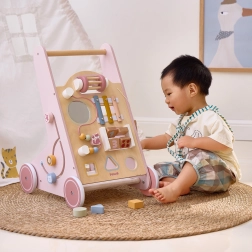 Nous vous présentons la trottinette en bois pour tout-petits PolarB en couleur rose, conçue pour les enfants à partir de 18 mois. Elle combine des activités amusantes comme regarder dans le miroir, des blocs tournants, des perles scintillantes, le tri des formes et jouer du xylophone. Avec cette trottinette, vos enfants découvriront le monde en toute sécurité.