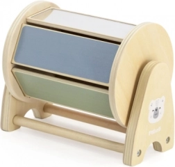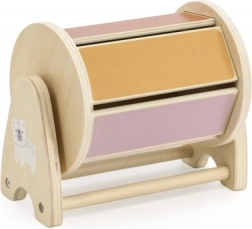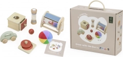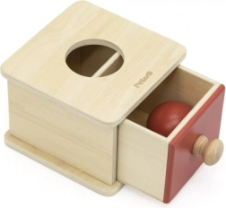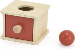 La boîte en bois avec tiroir et balle apprend à l’enfant que les objets existent même hors de sa vue. Elle développe la concentration, la patience et les premières relations logiques lors de l’insertion et de la découverte.