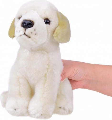 Ce labrador en peluche assis est une représentation fidèle de cette race appréciée. Sa surface douce invite aux câlins, tandis que ses yeux et son truffe en plastique confèrent au jouet une expression réaliste. Grâce à sa fabrication de qualité, il convient au jeu quotidien comme à la décoration de la chambre d’enfant.