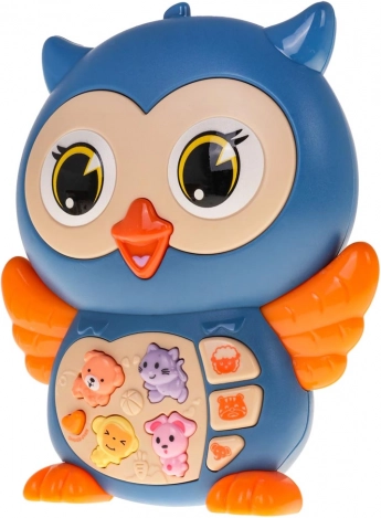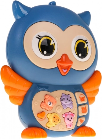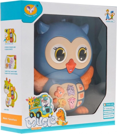Chouette interactive avec fonctions sonores et lumineuses pour les enfants à partir de 6 mois. La chouette est fabriquée en plastique de la plus haute qualité, résistante aux chocs et sûre pour les tout-petits, sans bords tranchants. Elle est conçue dans des couleurs vives pour attirer l’attention de l’enfant et l’encourager à jouer. Sur le ventre de la chouette se trouve un panneau avec des boutons activant des sons d’animaux (en premier mode), des mélodies, des sons Do-Ré-Mi (en deuxième mode) ainsi que des effets lumineux sous forme de lumières clignotantes sur les ailes. Les modes se changent à l’aide d’un bouton en forme de cœur. Le jouet dispose d’un réglage du volume. Il fonctionne avec 2 piles AA 1,5 V (non incluses)