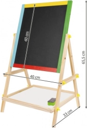 La structure en bois stable avec des éléments colorés est durable et sûre pour les enfants. La balette pour accessoires garde craies, feutre et éponge toujours à portée de main. Un montage facile sans outils spéciaux ravira tous les parents, et ses dimensions compactes conviennent à la chambre d’enfant comme à la salle de jeux.