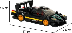 Le kit comprend 387 pièces qui vous permettent de créer une réplique fidèle de la Pagani Zonda R à l’échelle 1:28. Grâce à ses finitions détaillées, le modèle convient non seulement comme jouet, mais aussi comme décoration pour la chambre de tout amateur d’automobile. L’emballage contient une notice détaillée qui vous guide pas à pas tout au long du montage.