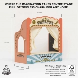 Imaginez vos enfants perdus dans un monde de fantaisie et d'histoires. Ce théâtre de marionnettes est fabriqué en bois de qualité avec un certificat FSC et dispose de rideaux en tissu, ajoutant une authenticité aux représentations. Décoré avec des détails dorés, il contient également une fenêtre pour la prévente des billets et un tableau pour afficher les spectacles. À l'intérieur, une magnifique scène nocturne avec des étoiles peut s'ouvrir, créant une atmosphère magique.
