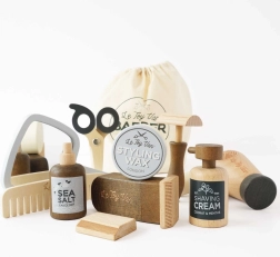 Cet ensemble pour petits coiffeurs et barbiers de Le Toy Van est idéal pour tous les jeunes stylistes. Le sac de coiffeur à cordon est fabriqué en coton naturel et contient 11 accessoires de qualité en bois lisse et arrondi certifié FSC®. Chaque pièce est peinte à la main avec des peintures non toxiques et résistantes aux éclats.