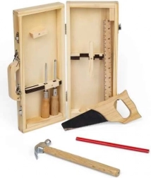 Pratique mallette en bois avec de vrais outils pour enfants, idéale pour les petits bricoleurs dès 5 ans. Le set développe la motricité fine, la coordination œil-main et la dextérité manuelle. Fabriqué en bois certifié FSC avec des peintures non toxiques, dans une valisette robuste et bien organisée pour un transport facile.