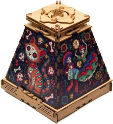 Donnez un nouveau look à votre Pyramide du Soleil avec l’extension au thème Jour des morts. Un puzzle en bois de 200 pièces couvre les quatre faces, et le montage est facile grâce aux cadres et à la couche de fond. L’extension est uniquement décorative et ne modifie pas la solution du casse-tête.