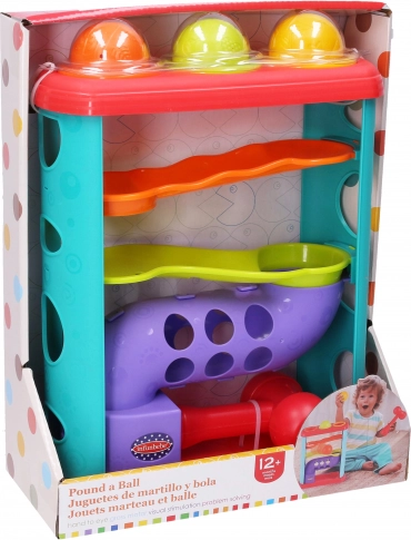 Coulisse à billes à marteler avec petit marteau, 3 billes, taille env. 32 cm. Développe la motricité et la coordination, jouet idéal pour les enfants d’âge préscolaire.