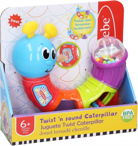 Un hochet joyeux en forme de chenille de Maamaa ravira chaque bébé. Il offre plusieurs stimulations sensorielles – segments rotatifs, un agréable bruit de cliquetis et de grelots, un bouton couineur et un petit miroir sécurisé. La taille idéale de 16 cm tient dans les petites mains et favorise le développement de la motricité fine ainsi que de la perception visuelle et auditive.