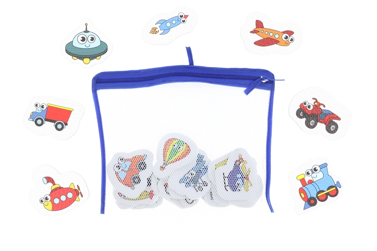Rendez le bain plus amusant avec des autocollants de bain ludiques sur le thème des moyens de transport. Les pièces en matériau PE résistant adhèrent facilement aux surfaces lisses humidifiées, se retirent aisément et développent la motricité fine et l’imagination. L’emballage contient 16 pièces dans une pochette filet zippée pratique.